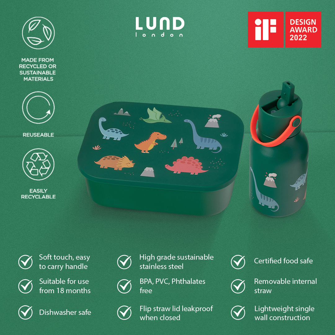 Bundling Lund London Little Lund Water Bottle 400ml & Lunch Box 1200ml – Dino